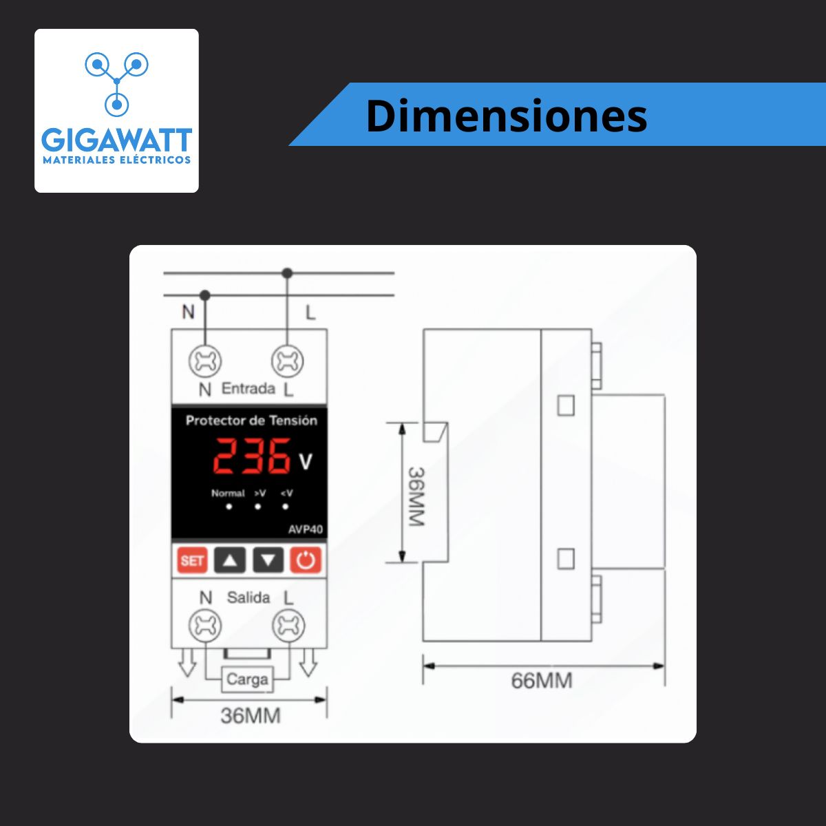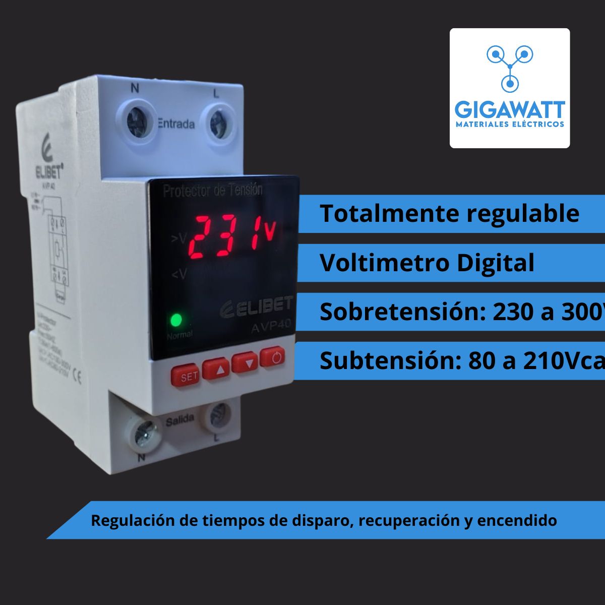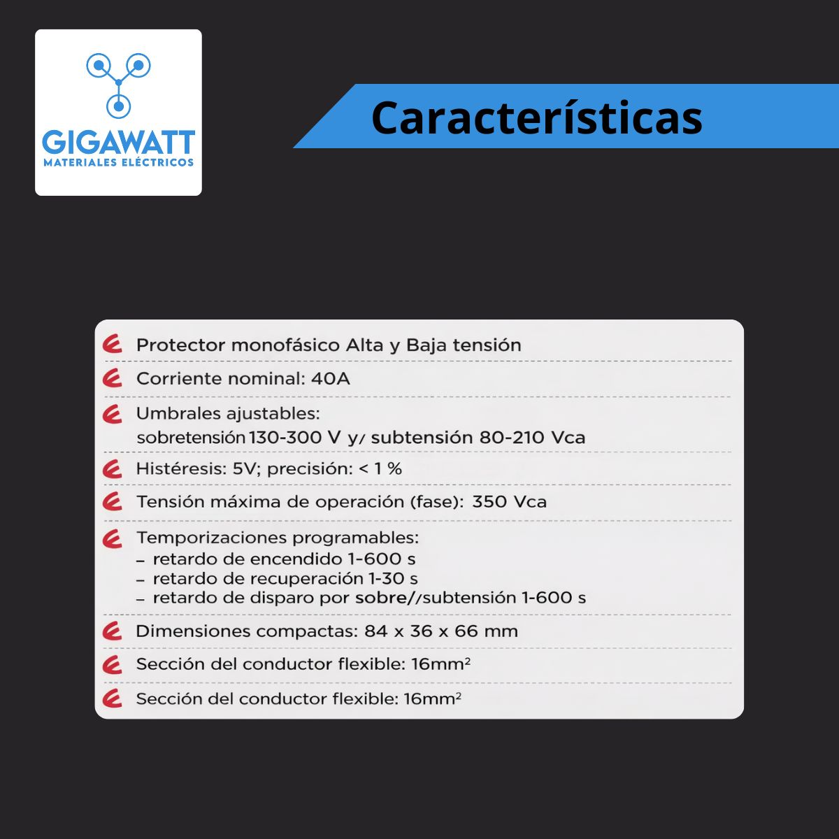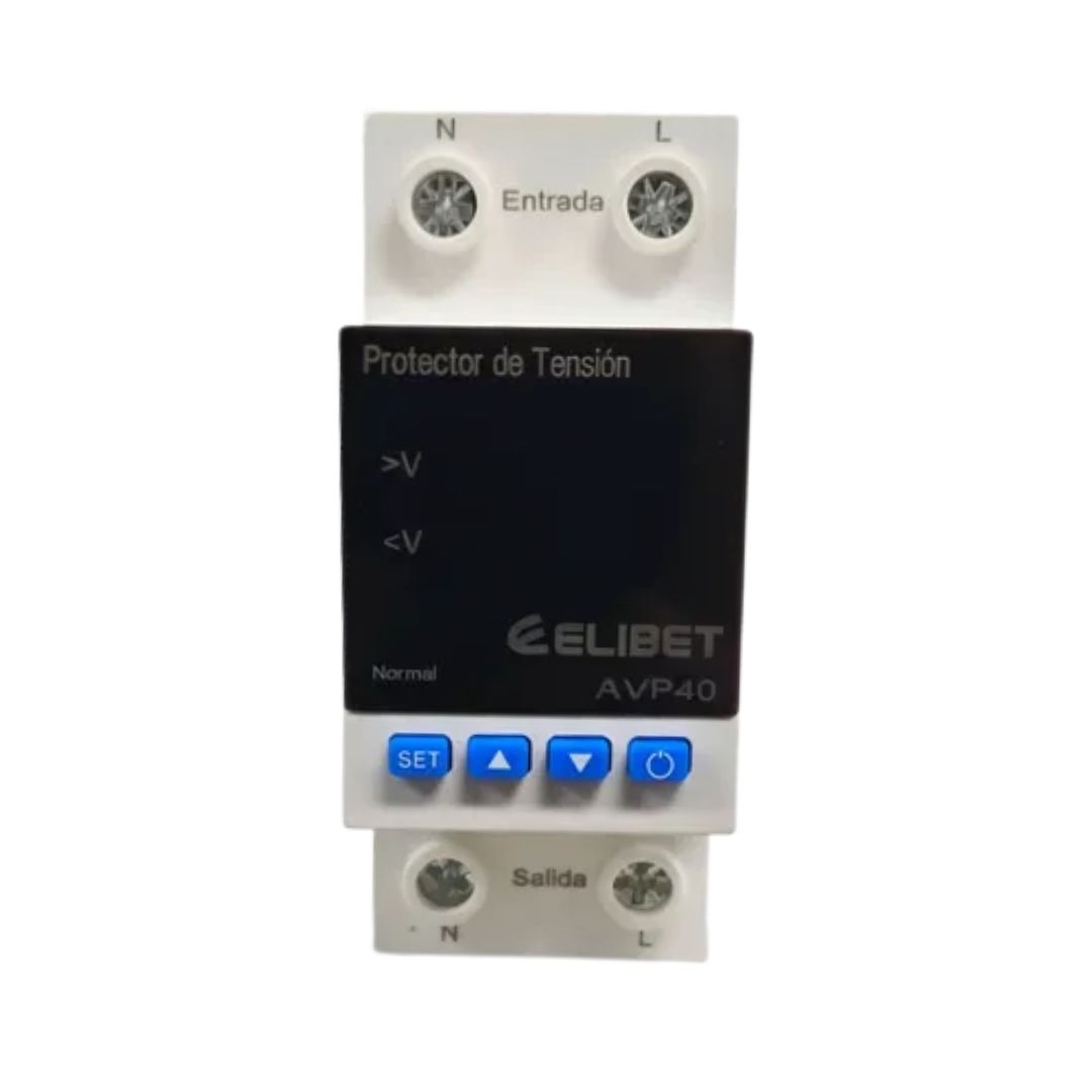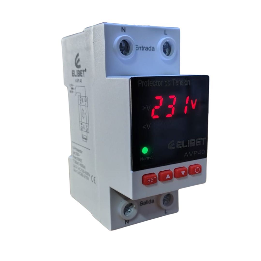 Protector de tension monofasico con voltimetro digital incorporado, diseñado para proteger instalaciones electricas frente a sobretension y subtension.