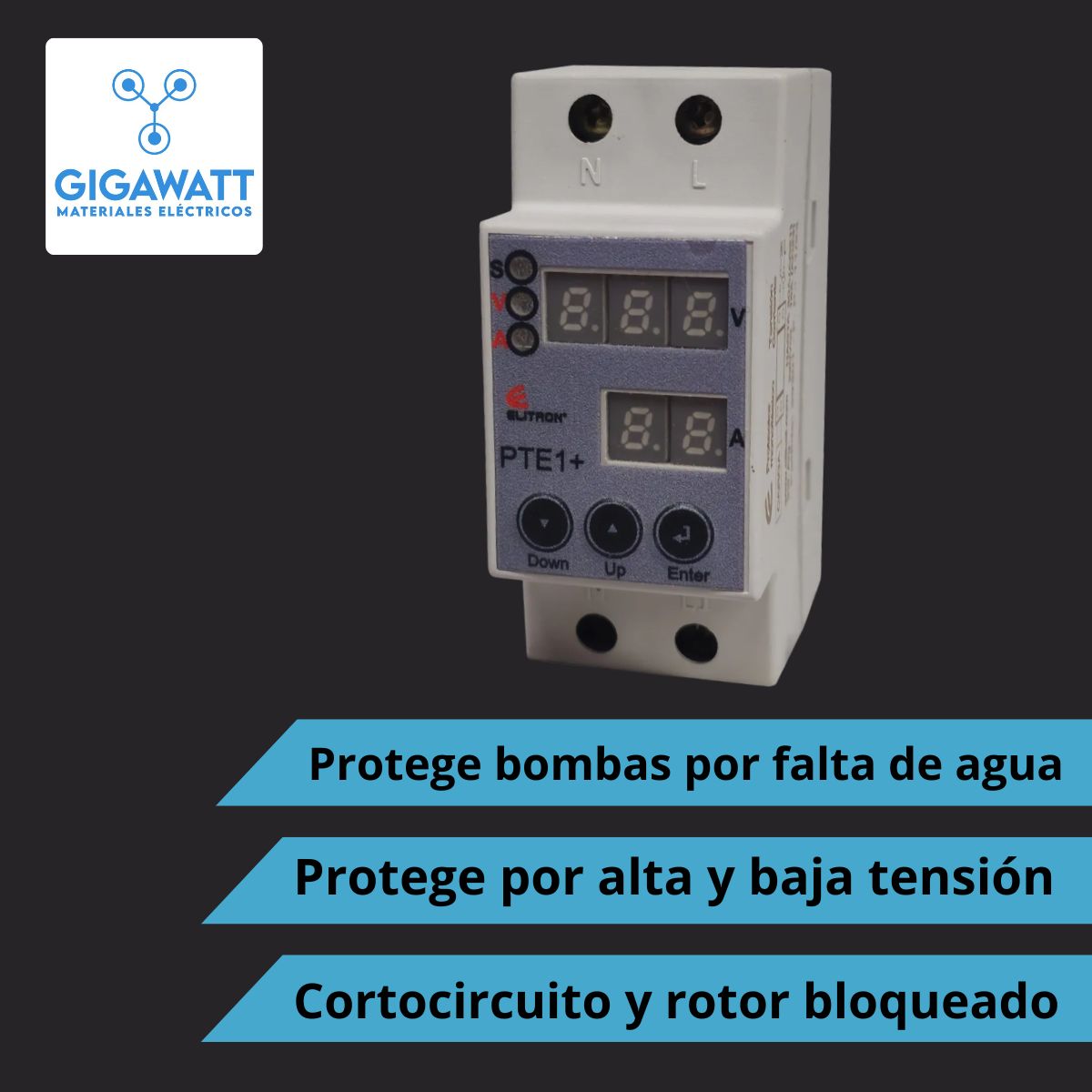 Protector termico electronico monofasico para bombas, diseñado para proteger motores y bombas contra fallas electricas y condiciones de trabajo anormales. Es una solucion practica y confiable que no requiere el uso de contactor, simplificando la instalacion.
