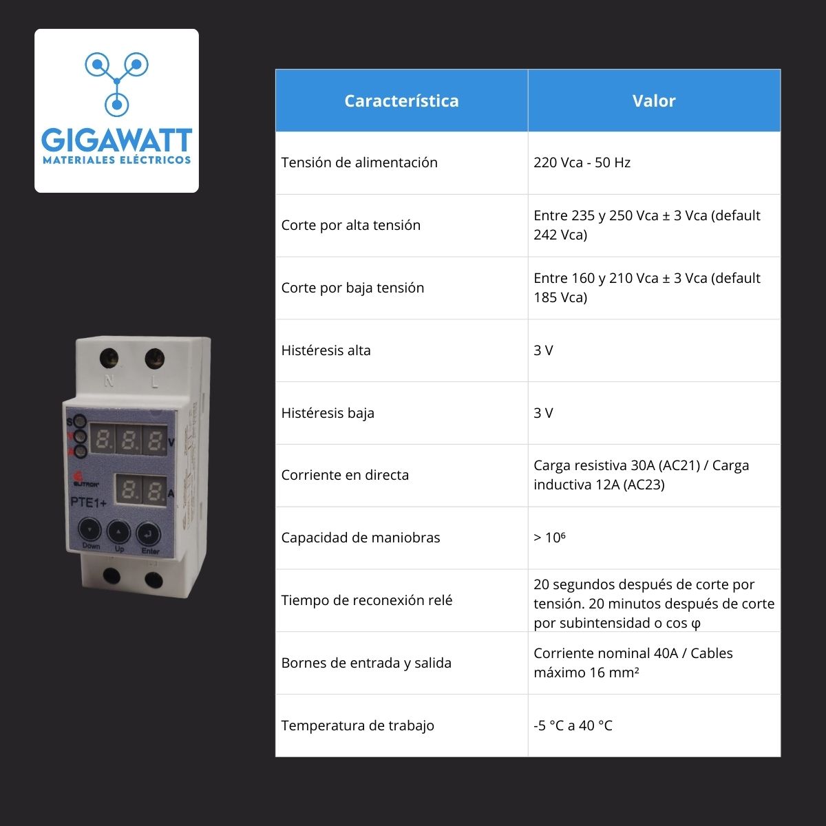 - Instalacion simple, no requiere contactor